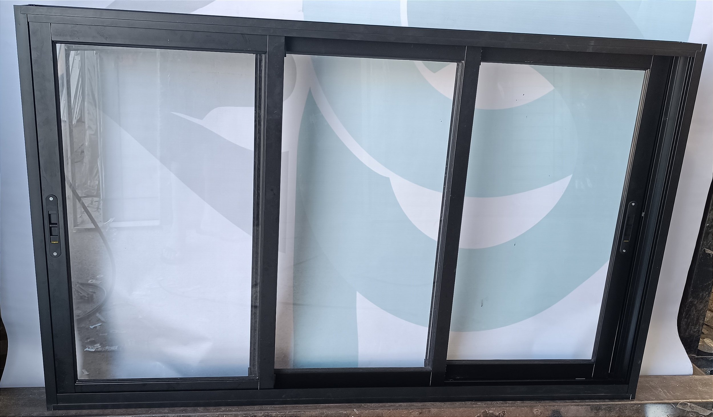Vitro 3 Folhas Móvel L-Suprema Preto Vidro 3mm